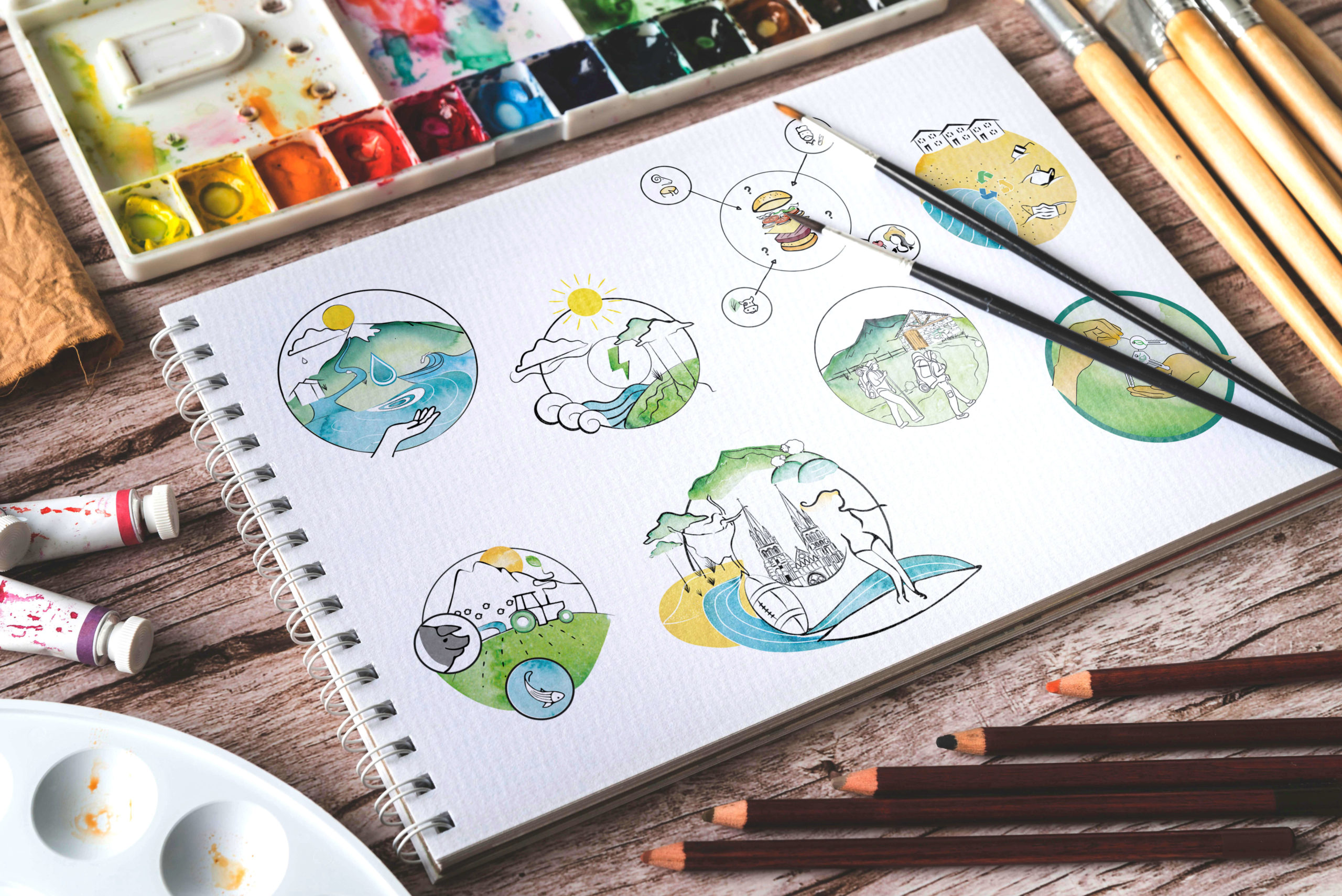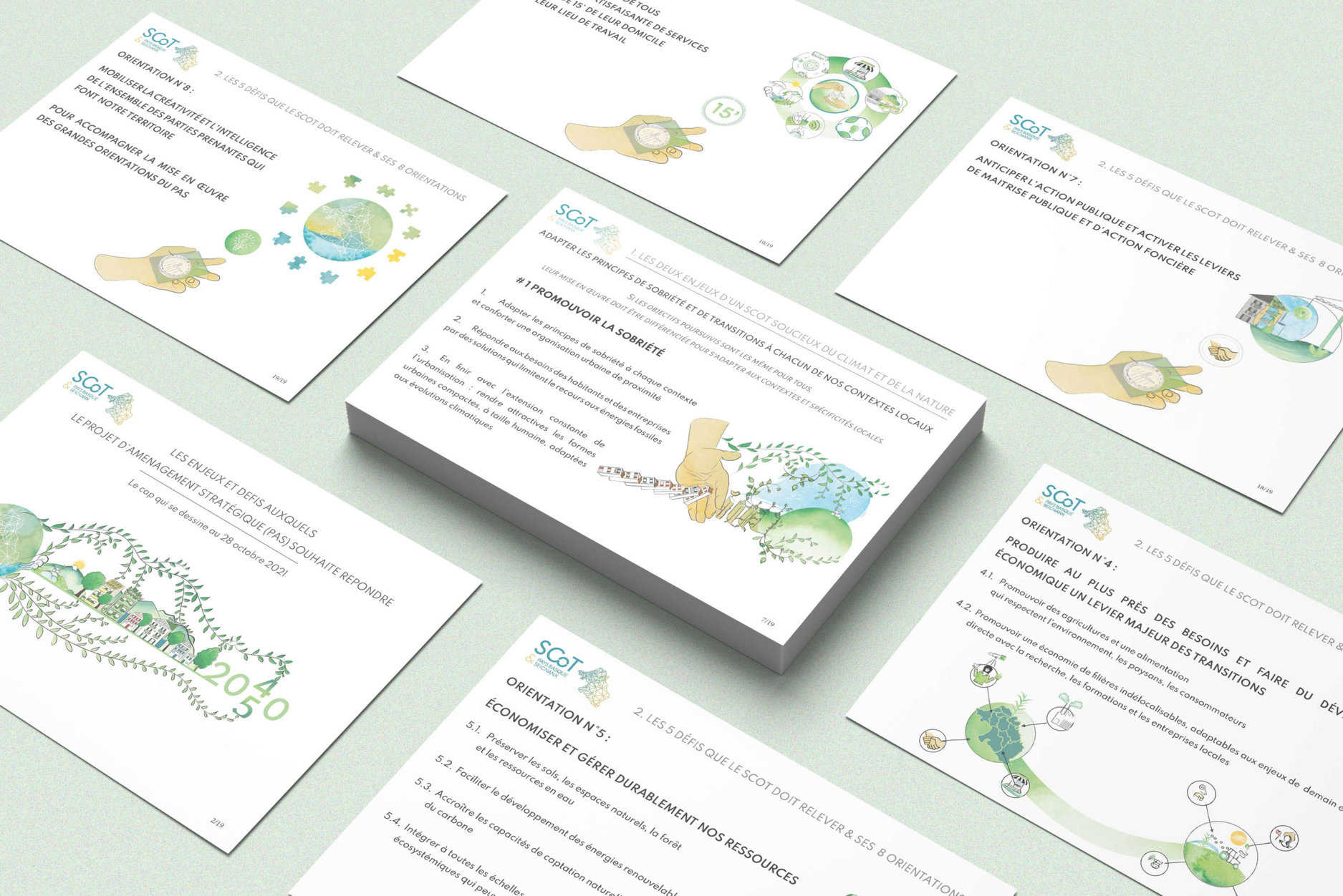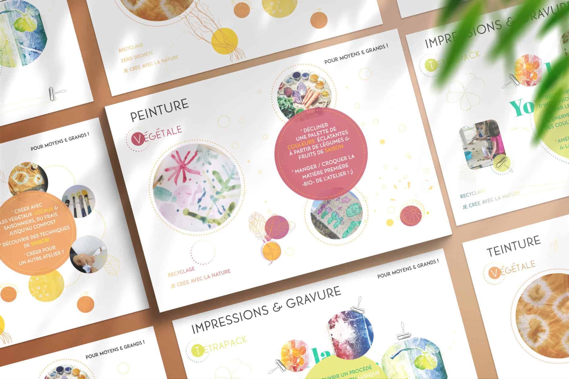 Les projets d'ensemble : Logo - papeterie - étiquettes posts & pictos réseaux sociaux - signature web - plv...